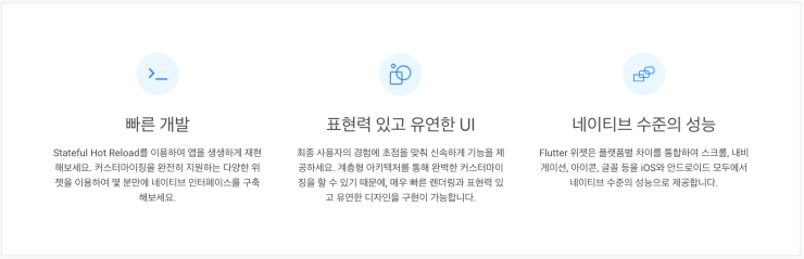 Flutter(플러터)는 하나의 코드베이스로 모바일, 웹, 데스크톱에서 네이티브로 컴파일 되는 구글의 아름다운 UI 툴킷입니다.