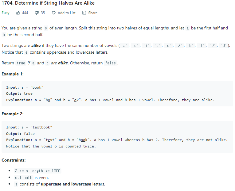 문제 출처:https://leetcode.com/problems/determine-if-string-halves-are-alike/