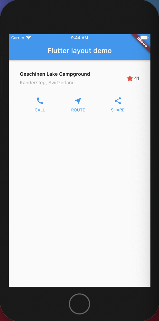 다음에는 각 row를 그려봅니다. 첫 번째 row 타이틀 영역으로 텍스트 column 하나, 별 아이콘 하나, 그리고 숫자를 가지고 있습니다. 첫 번째 자식 요소는 두 줄짜리 텍스트 column입니다. 이 column은 넓은 영역을 차지하고 있기 때문에, Expanded 위젯을 사용해야 합니다.