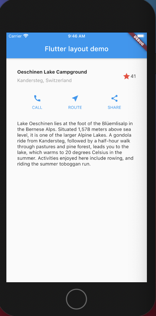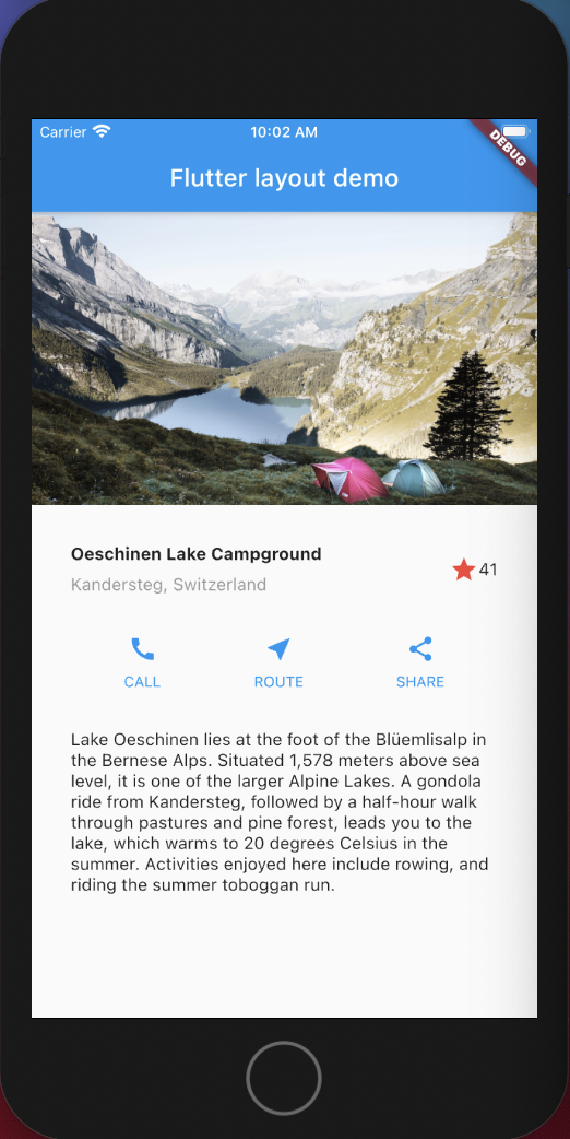 다음 링크는 https://flutter-ko.dev/docs/development/ui/layout/tutorial 레이아웃을 만드는 방법을 배웁니다.