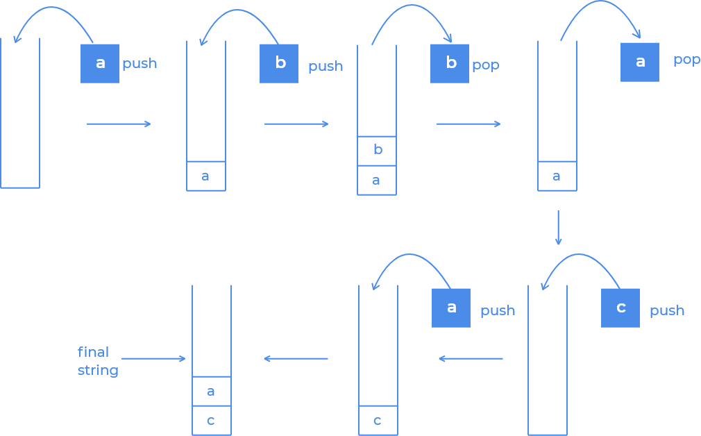 - stack의 최상단 char가 현재 char라면, stack에서 제거합니다.