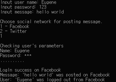 System.out.println("Message: '" + new String(data) + "' was posted on Facebook");
