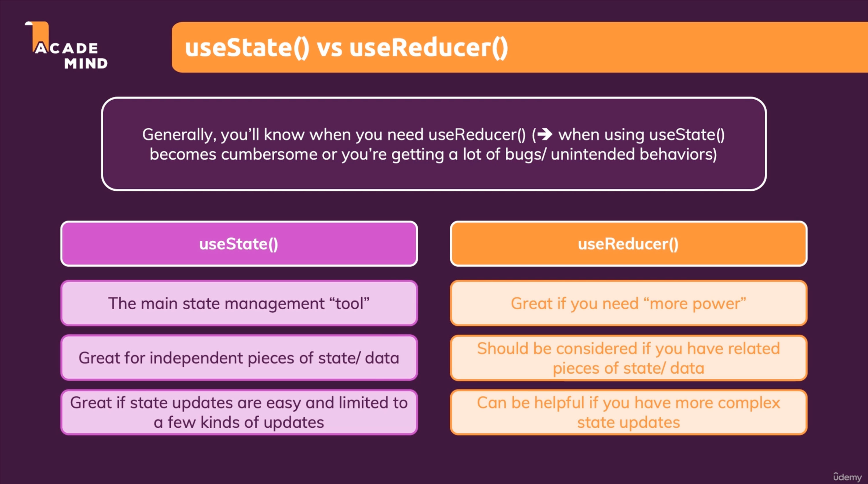 일반적으로 useReducer()이 더 강력하기 때문에 여러 이점이 많다.