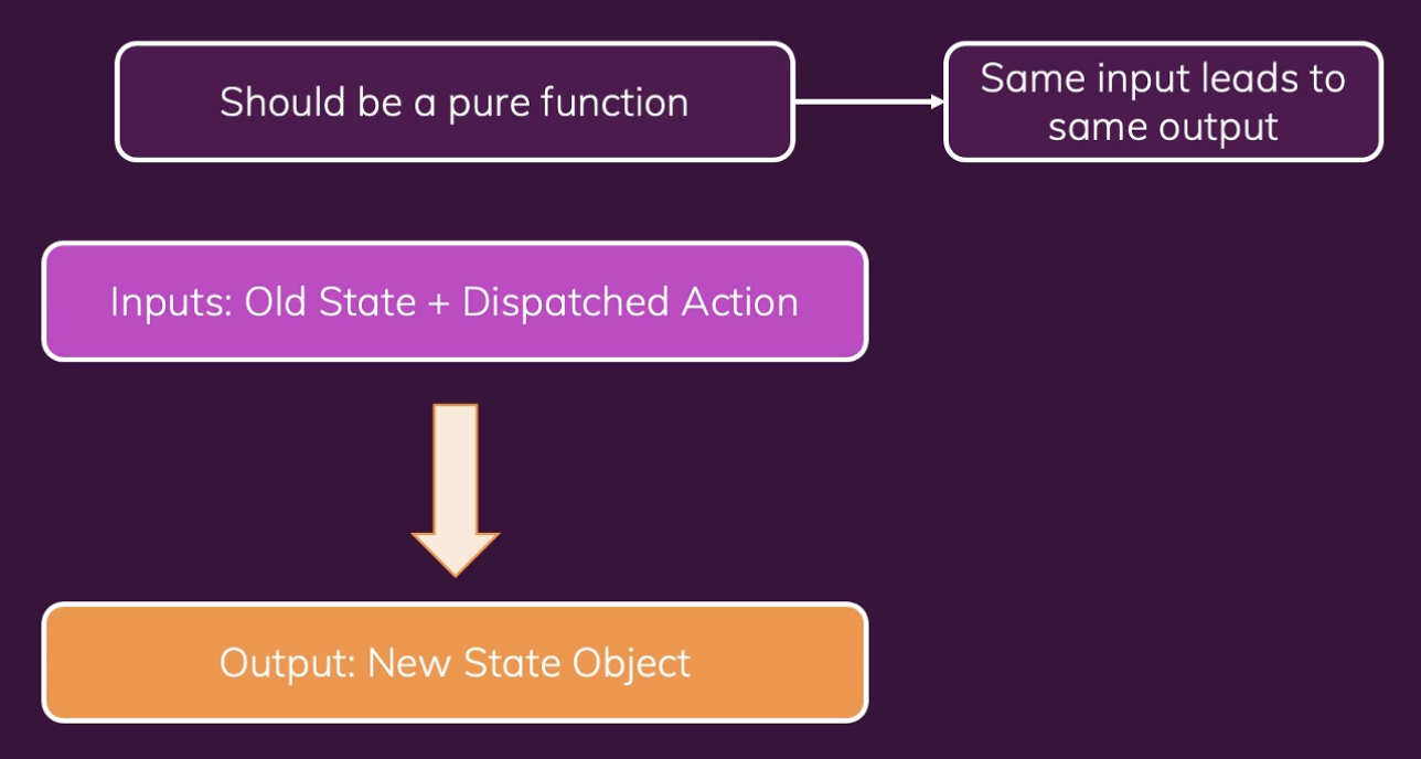 그래서 reducer 함수는 동일한 입력을 넣으면 정확히 같은 출력이 산출되는 pure 함수가 되어야한다.