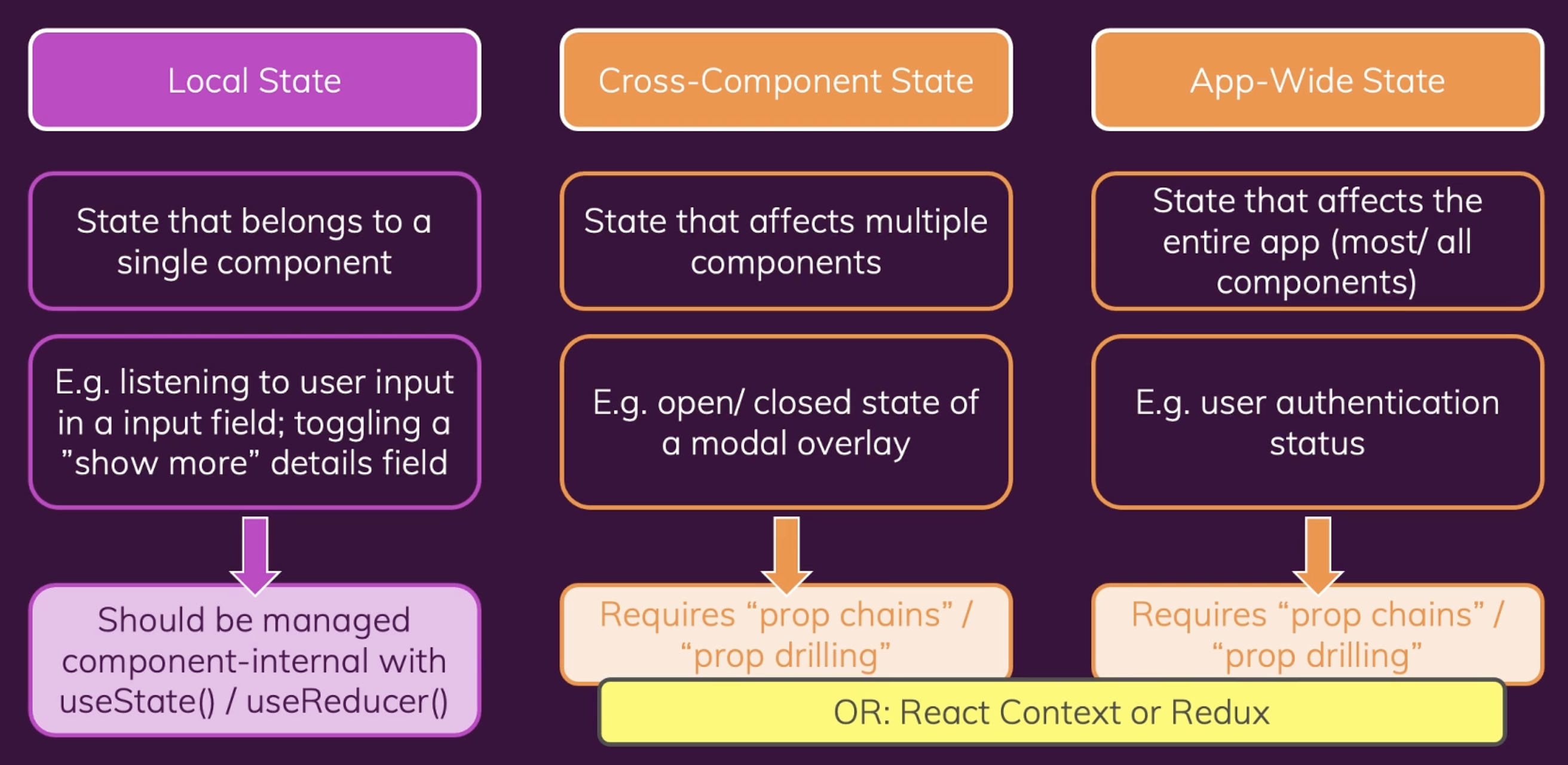이미 앞서 useState나 useReducer를 사용하여 그러한 데이터들을 관리했는데, 그 기능에 따라 아래 세가지로 구분지을 수 있다.