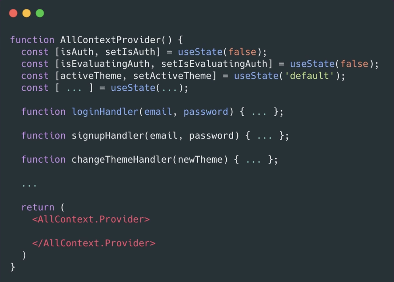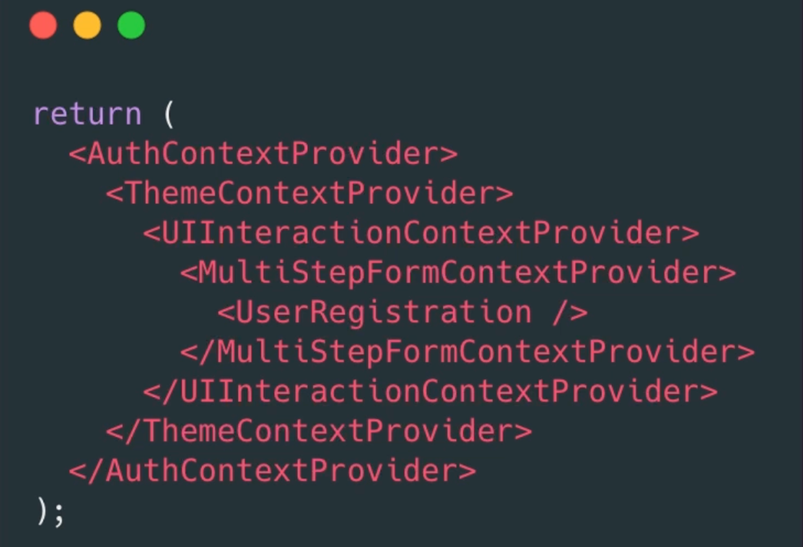 - 아주 심하게 중접된 JSX 코드와 다양하고 많은 ContextProvider, 또는 유지하기 어려운 거대한 하나의 ContextProvider