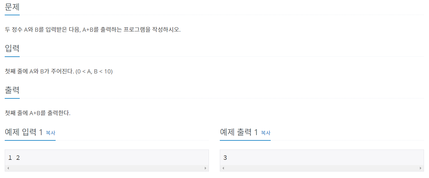 두 정수 A와 B를 입력받은 다음, A+B를 출력하는 프로그램을 작성하시오.