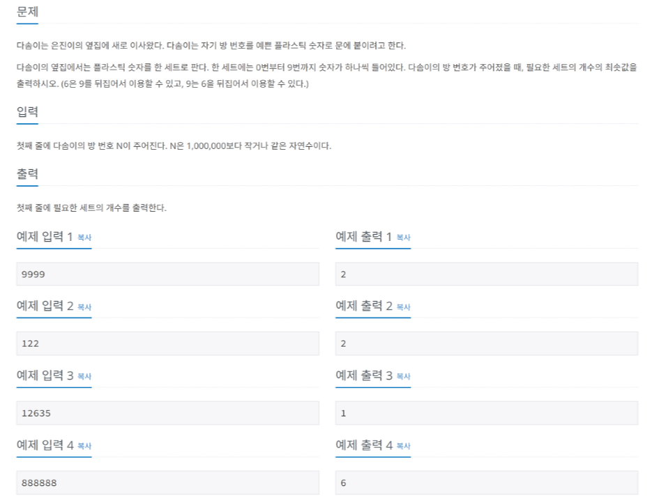 문제 출처 : https://www.acmicpc.net/problem/1475